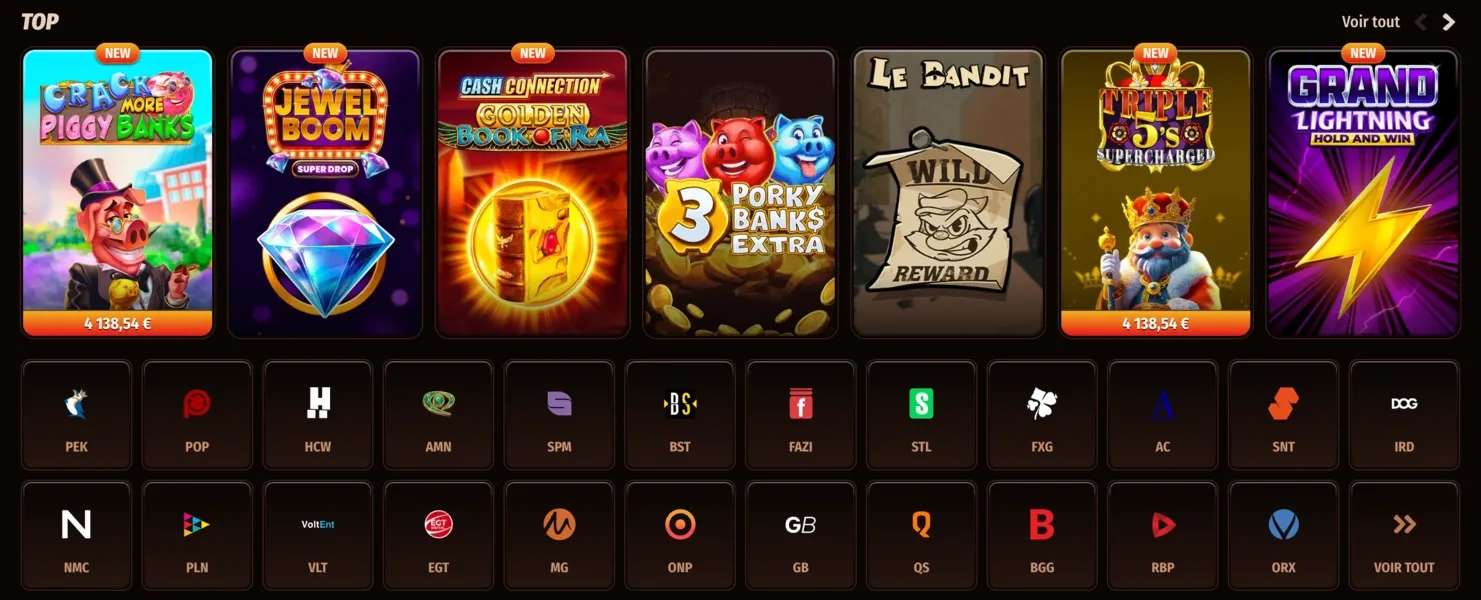 - Jeux à jackpots : Des productions offrant la chance de remporter des gains élevés.